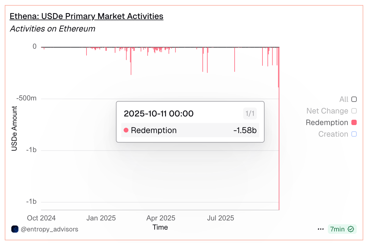 Ethena’s primary mint/redeem facility with whitelisted parties functioned without any issues throughout the volatility, servicing over $2bn worth of instant USDe redemptions in a 24hr period.